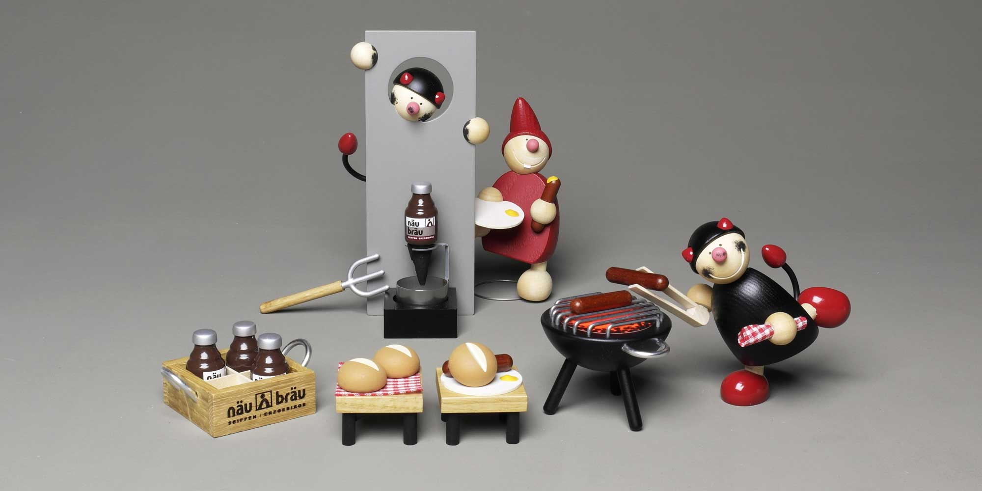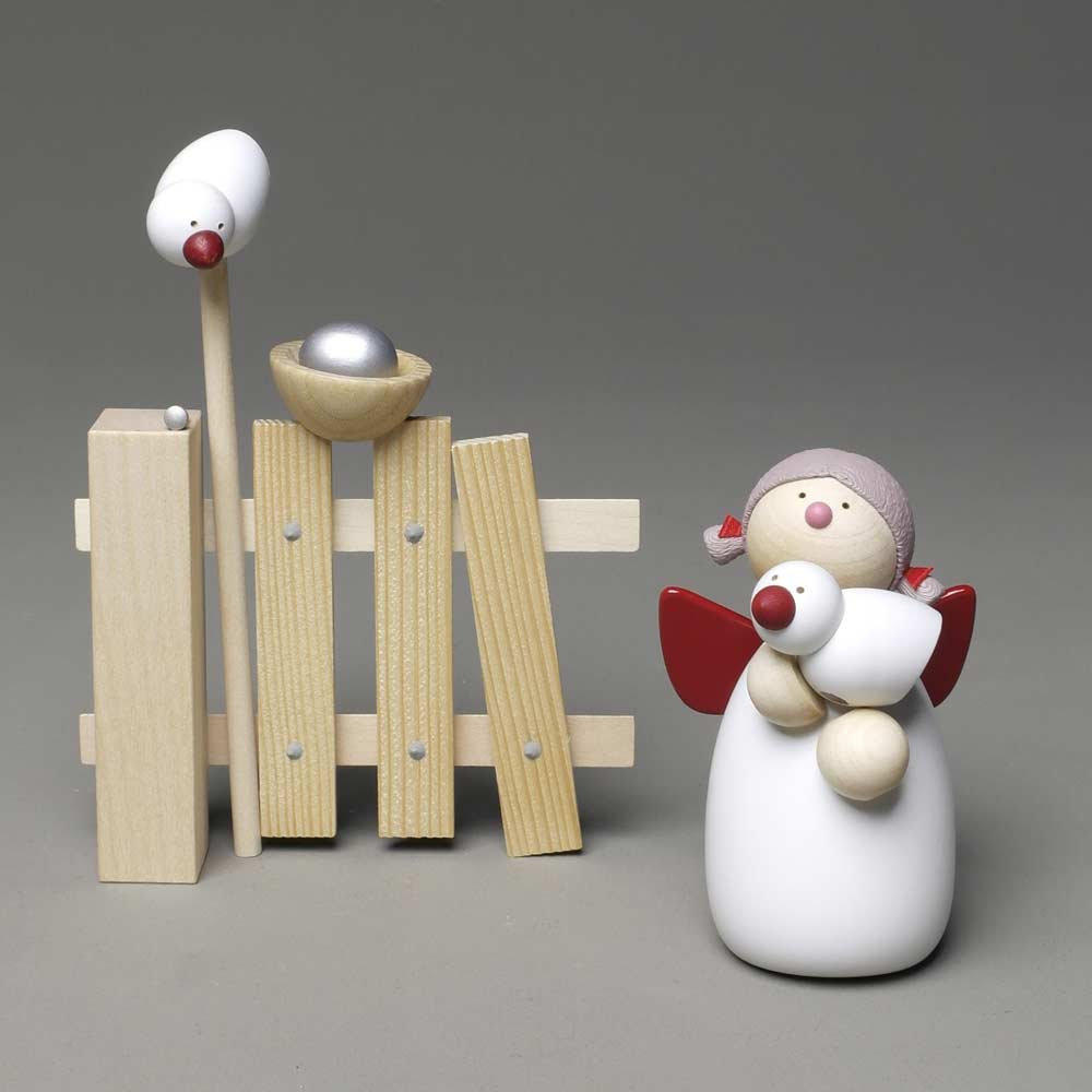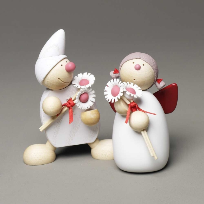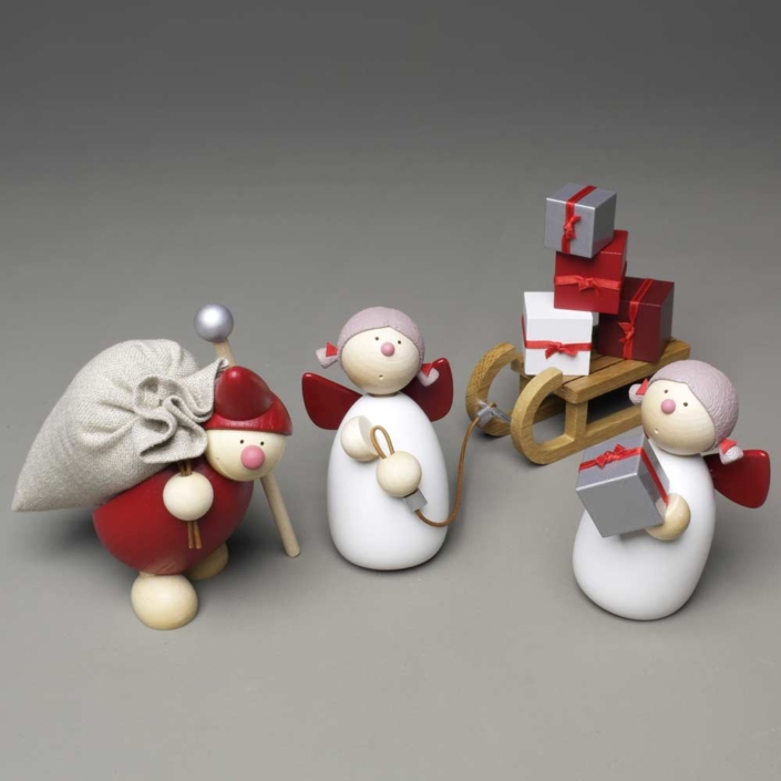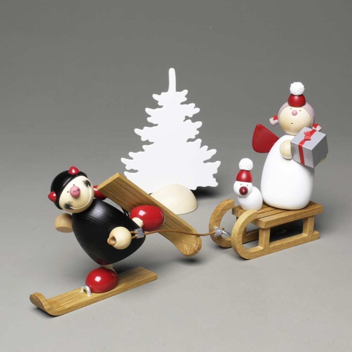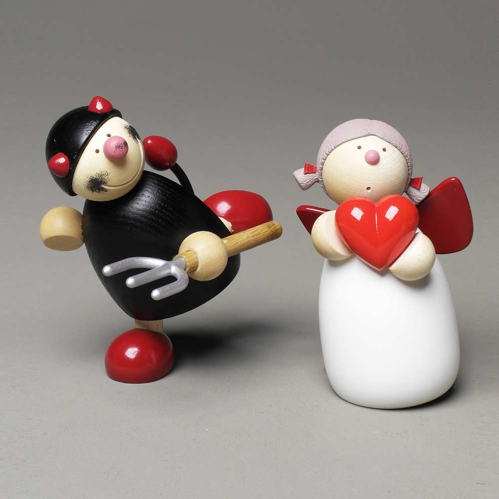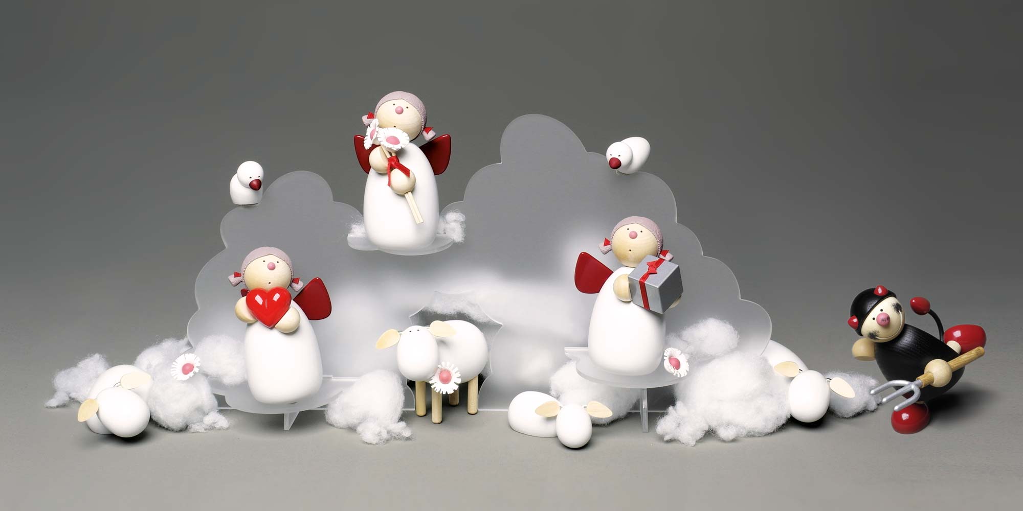 Zu unseren Wichten gesellten sich 2023/24 drei niedliche Engelchen und ein leichtfüßiges Teufelchen. Mit ihren zarten Flügeln und fröhlichen Gesichtern bringen sie seitdem eine besondere Leichtigkeit in unsere Figurenwelt. Während die Engelchen für Harmonie sorgen, mischt das Teufelchen mit einem Augenzwinkern alles ein wenig auf.